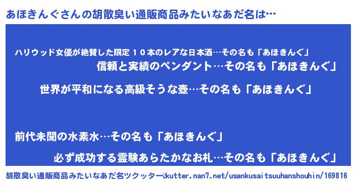 | 意味不明あだ名 | 『あほきんぐフォーエバー』 |