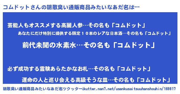 | 意味不明あだ名 | 『永久保存コムドット』『自称コムドット』 |