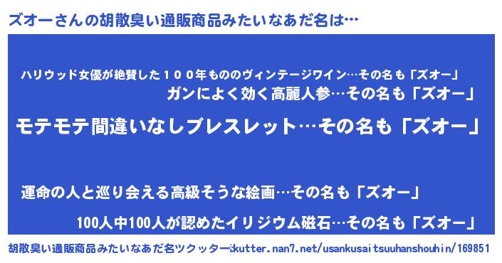 | ヘコむあだ名 | 『ズオふぇ~』『牛乳』『ズオを』 |