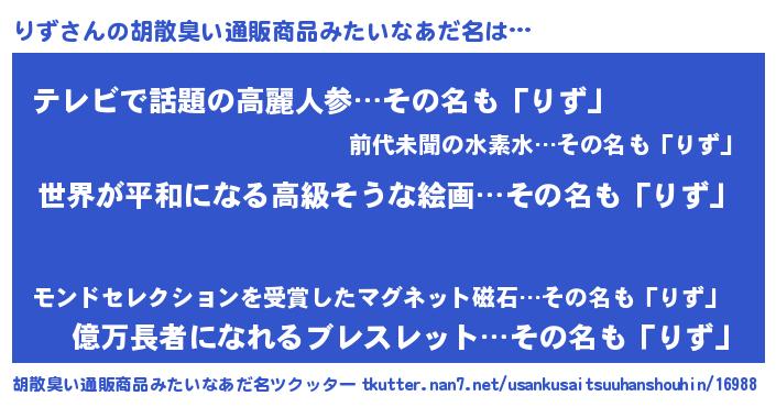 | 肩書あだ名 | 『りず総理大臣』『りず閣下』 |