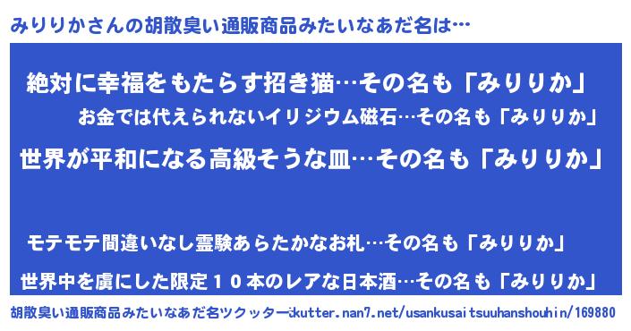 | ヒーロー風カッコイイあだ名 | 『ウルトラみりりかマン』『ネオミリリカ』 |