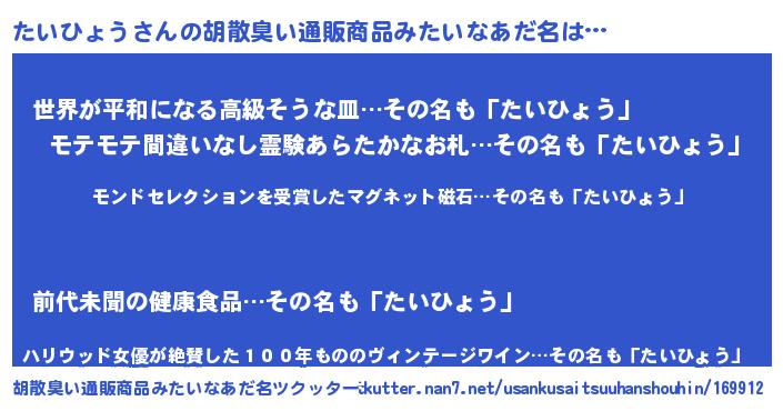 | ヘコむあだ名 | 『レバニラ』『たいにー』『たいお』 |