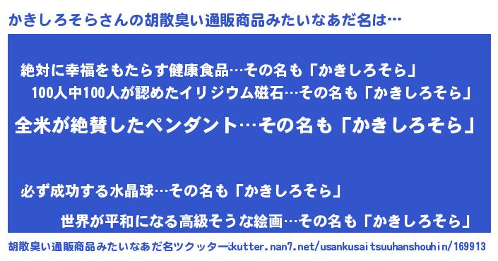 | 意味不明あだ名 | 『とにかく怪しいかきしろそら』 |