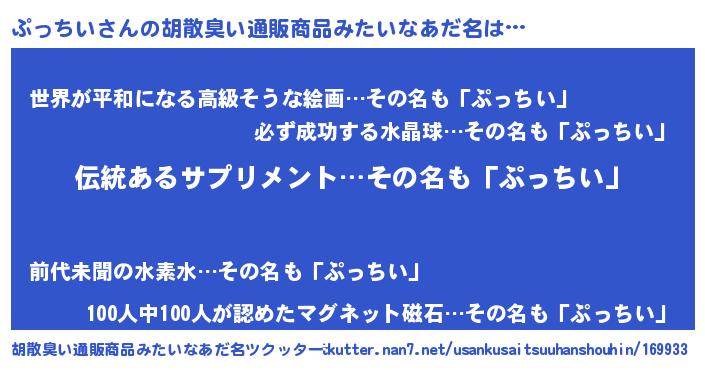 | 男性向けラノベタイトル風あだ名 | 『ぷっちいの嫁は女の子じゃないと思った?』 |
