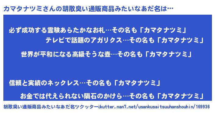 | 欧米人風あだ名 | 『カマタナツミ・ステッグマイヤー』 |