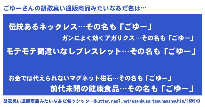 | 意味不明あだ名 | 『ペロリンごゆー』『永久保存ごゆー』 |