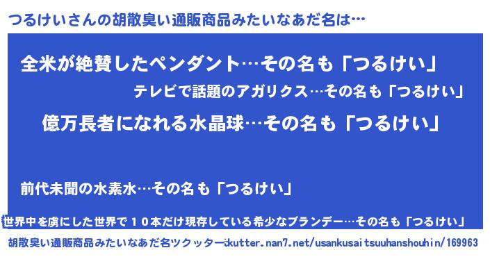 | 男性向けラノベタイトル風あだ名 | 『ツルケイアートオンライン』 |