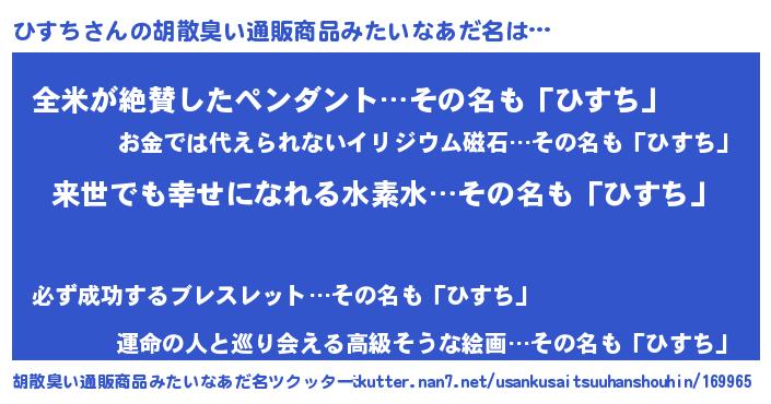 | 男性向けラノベタイトル風あだ名 | 『ひすちという概念が存在しない退屈な世界 』 |