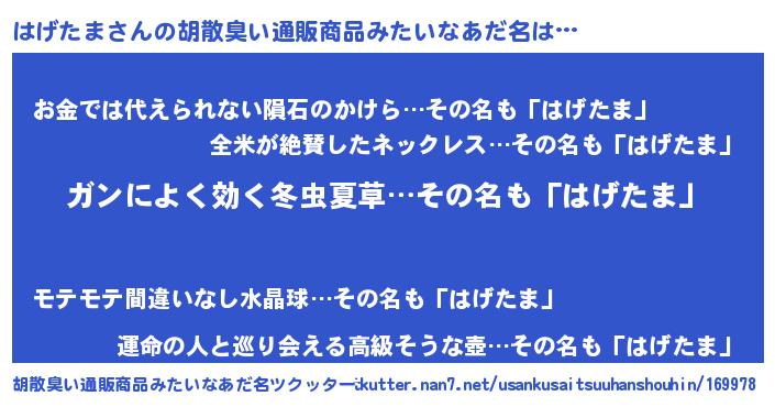 はげたまさんの胡散臭い通販商品みたいなあだ名をツクッター!