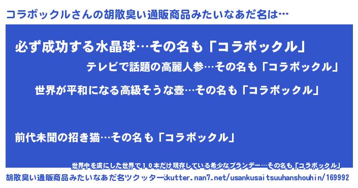 | 意味不明あだ名 | 『コラボックルフォーエバー』 |