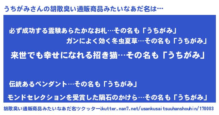 | 意味不明あだ名 | 『永久保存うちがみ』『ペロリンうちがみ』 |