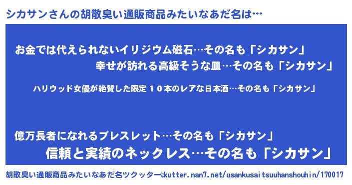 | 意味不明あだ名 | 『住所不定無職シカサン(39歳)』 |