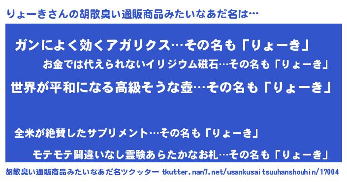 | 意味不明あだ名 | 『りょーきフォーエバー』『自称りょーき』 |