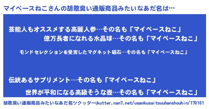 | ヒーロー風カッコイイあだ名 | 『慈愛の使者マイペースねこ』 |