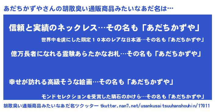 | 肩書あだ名 | 『あだちかずや御曹司』 |