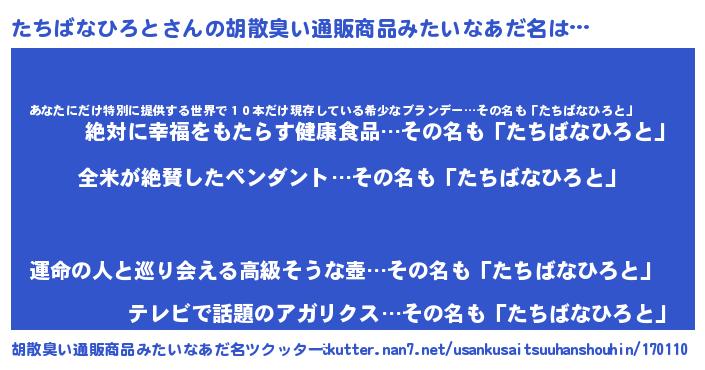| 意味不明あだ名 | 『とにかく怪しいたちばなひろと』 |