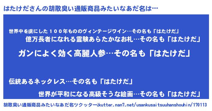 | ヘコむあだ名 | 『つくし』『はたにー』『はたぷりん』 |