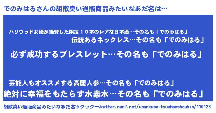 | ヘコむあだ名 | 『でのにー』『でのみはる(小並感)』 |
