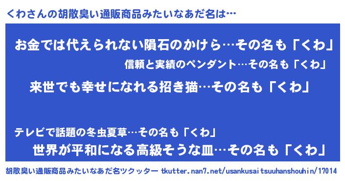 | 伝説のあだ名 | 『古より伝わる吟遊詩人くわ』 |