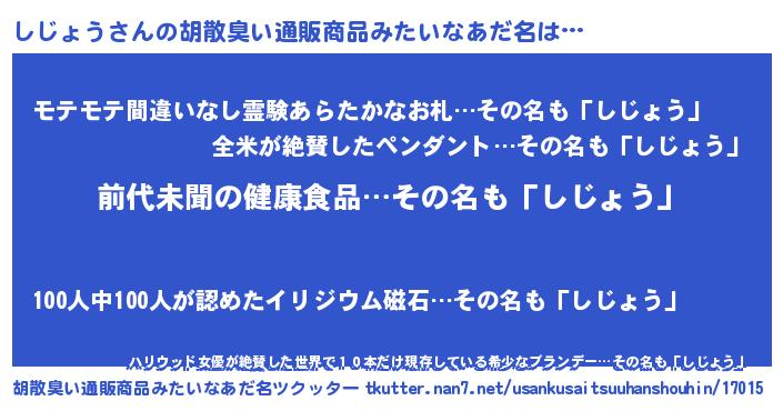 | ヘコむあだ名 | 『しじょう(笑)』『しじにゅー』 |