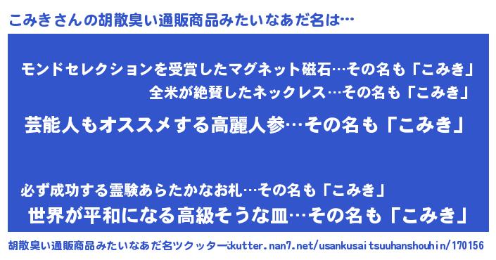 | ヘコむあだ名 | 『レバニラ』『こみお』『こみき(爆)』 |