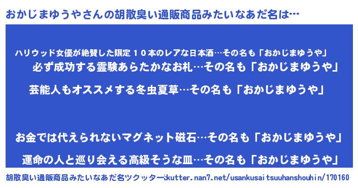 | 意味不明あだ名 | 『自称おかじまゆうや』 |