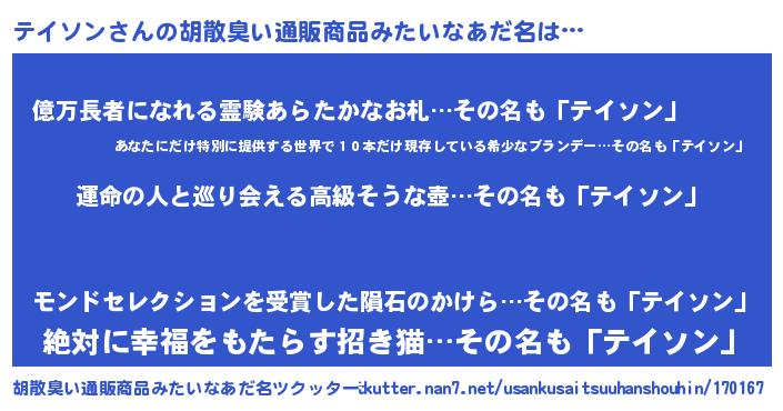 | ヘコむあだ名 | 『レバニラ』『テイっふぃ~』 |