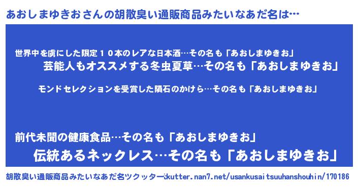 | ヘコむあだ名 | 『あおっぺ』『あおしまゆきお(笑)』 |