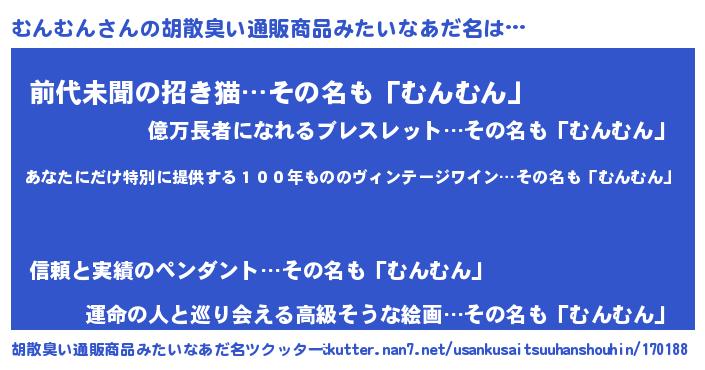 | 意味不明あだ名 | 『住所不定無職むんむん(1歳)』 |