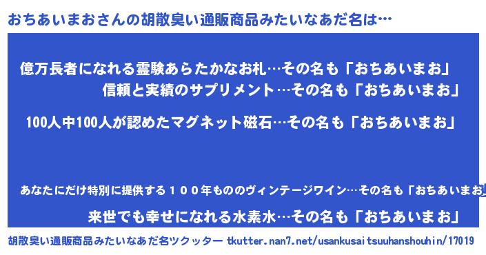 | 欧米人風あだ名 | 『ダニエルおちあいまお』 |