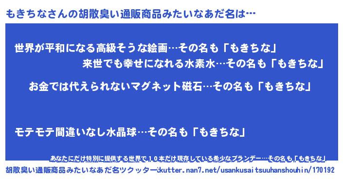 | ヘコむあだ名 | 『豆乳』『もきちな(笑)』 |
