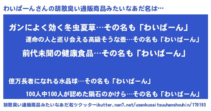 | 意味不明あだ名 | 『永久保存わいばーん』『自称わいばーん』 |
