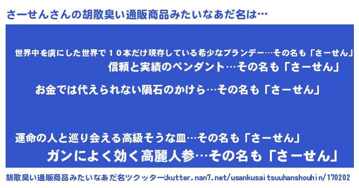 | ヒーロー風カッコイイあだ名 | 『愛の使者さーせん』『仮面サーダー』 |