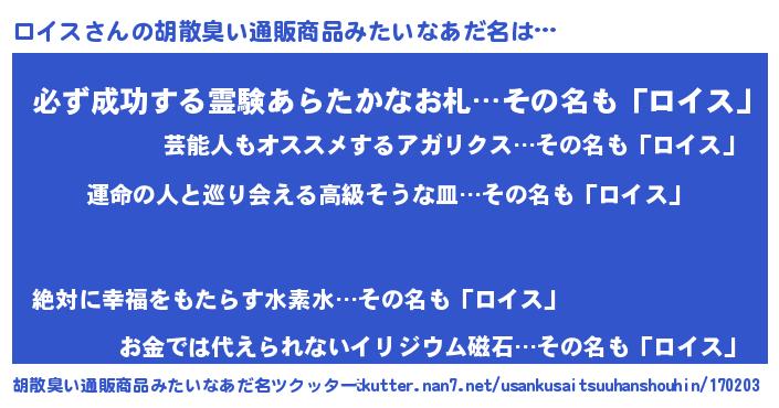 | 欧米人風あだ名 | 『ロイスクリステル』『マイケルロイス』 |