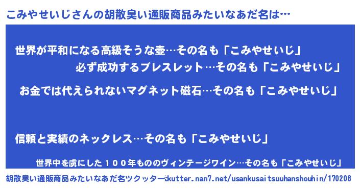| 肩書あだ名 | 『こみやせいじ助教授』 |