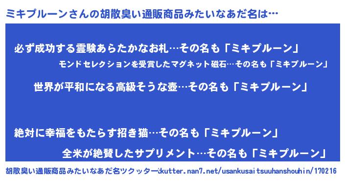 | ファンタジー風あだ名 | 『エターナルミキプルーンー』 |