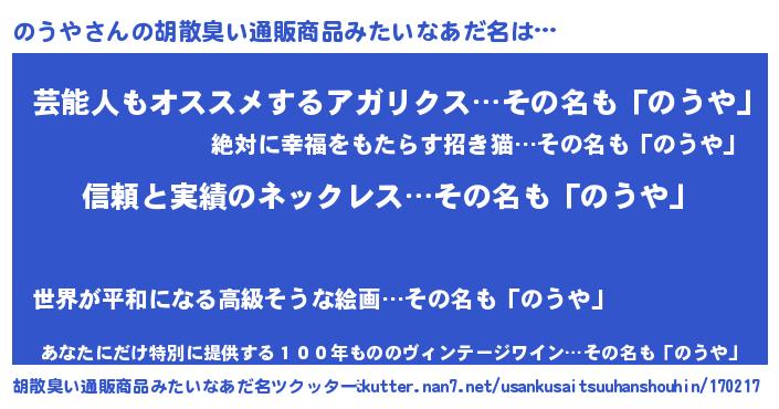| 意味不明あだ名 | 『とにかく怪しいのうや』『自称のうや』 |