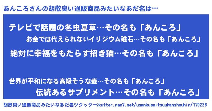 | 意味不明あだ名 | 『永久保存あんころ』『自称あんころ』 |