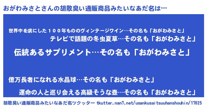 | ヘコむあだ名 | 『おがお』『なまこ酢』『おがにゅー』 |