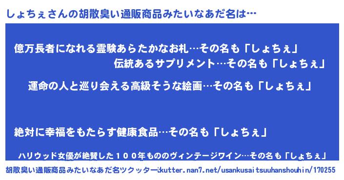 | 意味不明あだ名 | 『しょちぇフォーエバー』 |