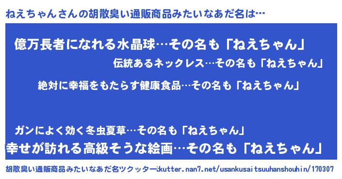 | 恥ずかしいあだ名 | 『ねえちん』『プリティーねえちゃん』 |