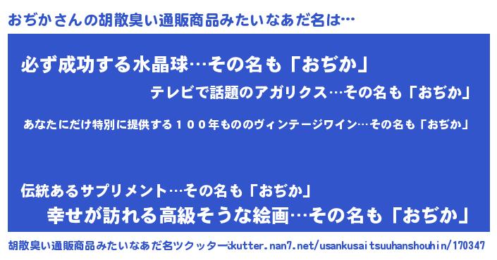 | 意味不明あだ名 | 『住所不定無職おぢか(8歳)』『自称おぢか』 |