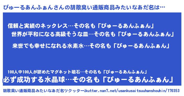 | 意味不明あだ名 | 『なめこ科ぴゅーるあんふぁん属』 |