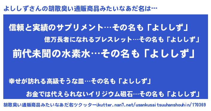 | 意味不明あだ名 | 『永久保存よししず』『ペロリンよししず』 |