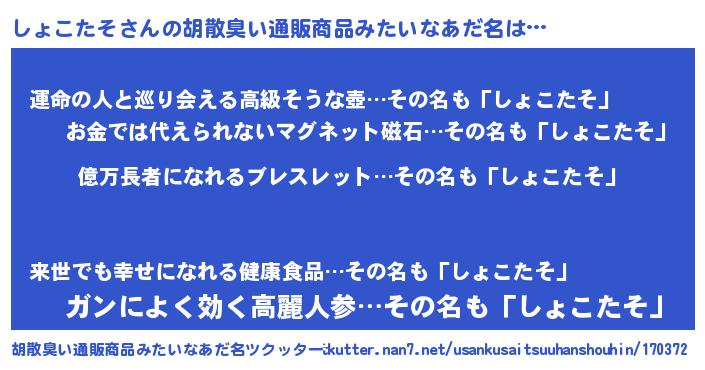 しょこたそさんの胡散臭い通販商品みたいなあだ名をツクッター!