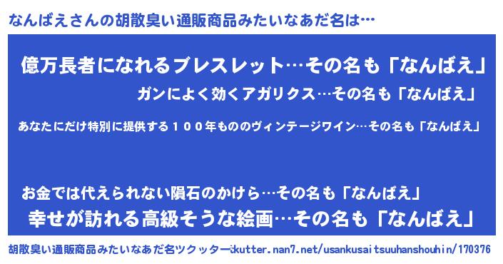 | 意味不明あだ名 | 『住所不定無職なんばえ(7歳)』 |