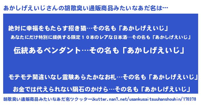 | 伝説のあだ名 | 『解き放たれた遊び人あかしげえいじ』 |
