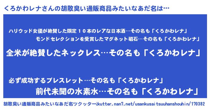| 意味不明あだ名 | 『とにかく怪しいくろかわレナ』 |