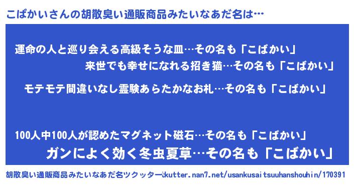 | 意味不明あだ名 | 『ペロリンこばかい』『自称こばかい』 |