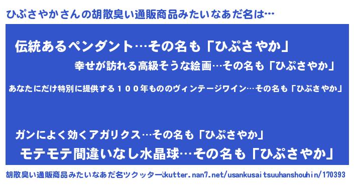 | 意味不明あだ名 | 『ニラ科ひぷさやか属』 |